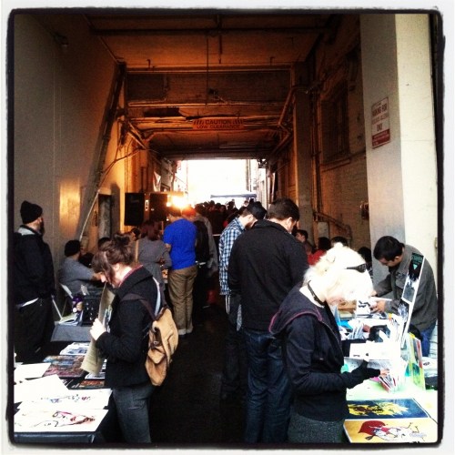 Dark Mouse creator Nathaniel (Eyedraugh.com) had several zines, including the new zombie skate zine Skatepocalypse. He has some really interesting art pieces at the Blood Orange Infoshop gallery for the month of November. “Some Cool Dudes” seem to be a favorite.