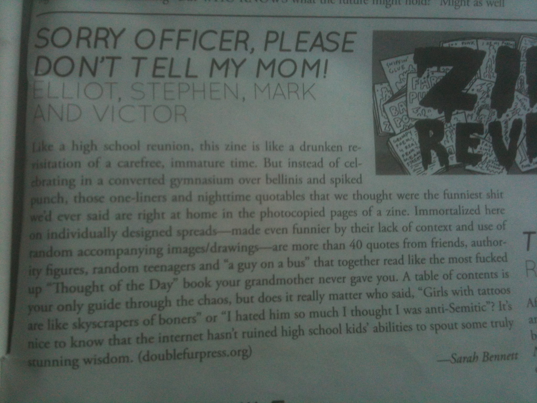 We just found out that LA Record ( Vol 6 No 4, Summer 2012, Issue 107) reviewed “Sorry Officer.”